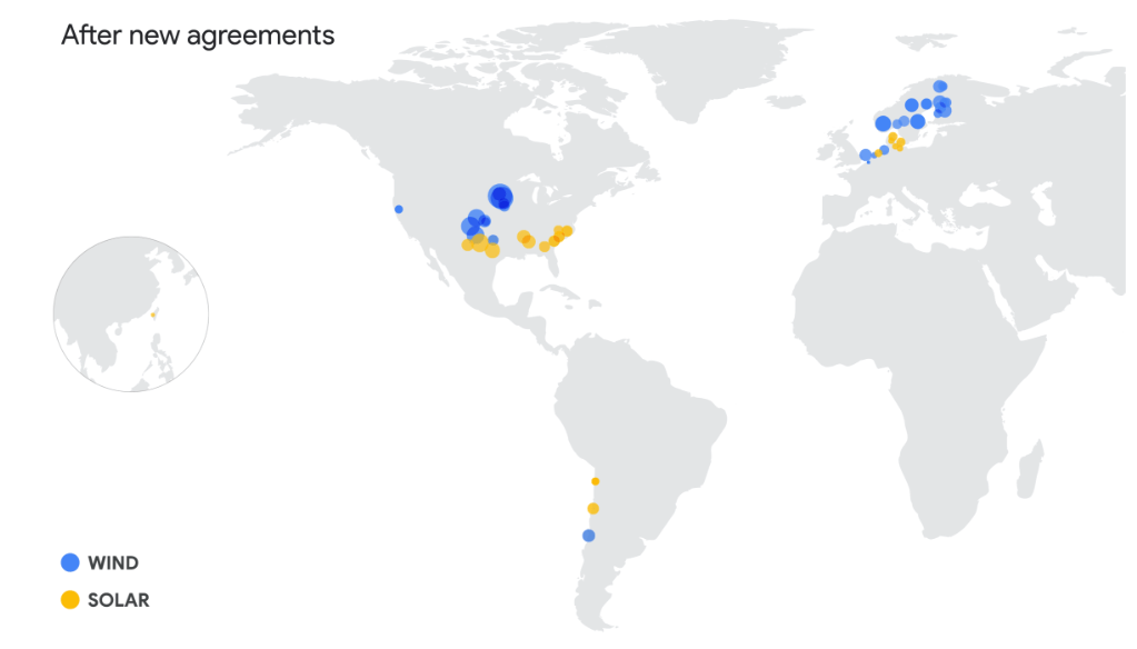 Google señala que lo anterior equivale a más de un millón de tejados de paneles solares, y que producirá más electricidad que lugares como Uruguay, Lituania o Washington DC, y mejor aún, utilizando energía libre de carbono.