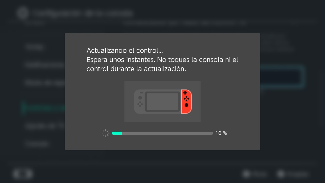 Al seleccionarlo, verás cómo primero se actualiza el mando izquierdo, para luego continuar con el mando derecho, y así finalizar el proceso de actualización de los Joy-Con.