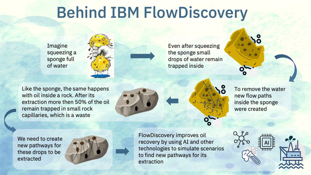 Además, IBM se encuentra trabajando con la empresa brasileña Solintec para poder aplicar esta tecnología en la industria petrolera. Aquí, FlowDiscovery puede ser utilizado para apoyar en la extracción del crudo ubicado en los pequeños capilares de rocas ubicadas en los yacimientos de petróleo. La idea es que a través de imágenes microscópicas de estas rocas, se pueda crear una simulación que permita recuperar de la mejor forma este recurso.