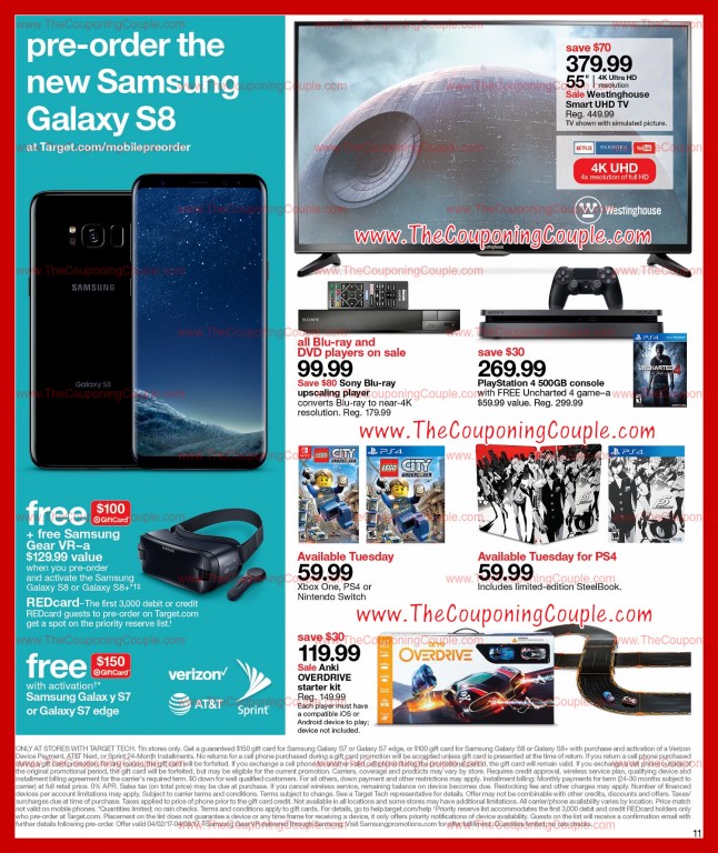 Fue así como la tienda Target publicó un folleto en el que presenta al Galaxy S8 con fecha del día de su preventa oficial; 2 de abril. Ese día los usuarios de Estados Unidos podrán adquirir su cupo para la preventa del Galaxy S8 y S8 Plus. Además para los primeros clientes que accedan a esta oferta tendrán además una giftcard de US$100 para usar dentro de la tienda y tendrán de regalo un Gear VR. Sobre el precio, no sale nada mencionado, pero se espera que luego de su evento en Nueva York se conozca el precio real del dispositivo.