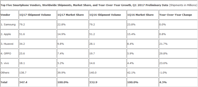 Por ende, los datos que llegan desde IDC tienen bastante lógica, pues la venta de smartphones los tres primeros meses del año subió en un 4,3%, superando las expectativas del 3,6% que tenían en la misma firma. Este aumento se traduce en 332.9 millones de unidades vendidas en el primer trimestre, donde Samsung se llevó la mayor tajada con 79.2 millones de smartphones vendidos, lo cual corresponde a un 22,8% de cuota de mercado.