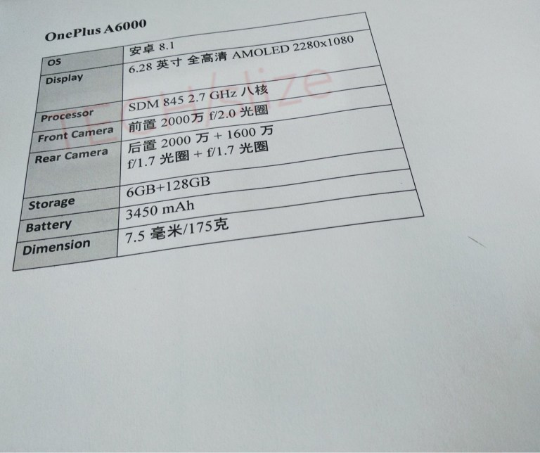Las especificaciones vienen desde un retailer de China, y es que al parecer el teléfono contará con un micro procesador Qualcomm Snapdragon 845, una pantalla AMOLED de 6.28 pulgadas con resolución FHD+ y relación de aspecto 18:9.
