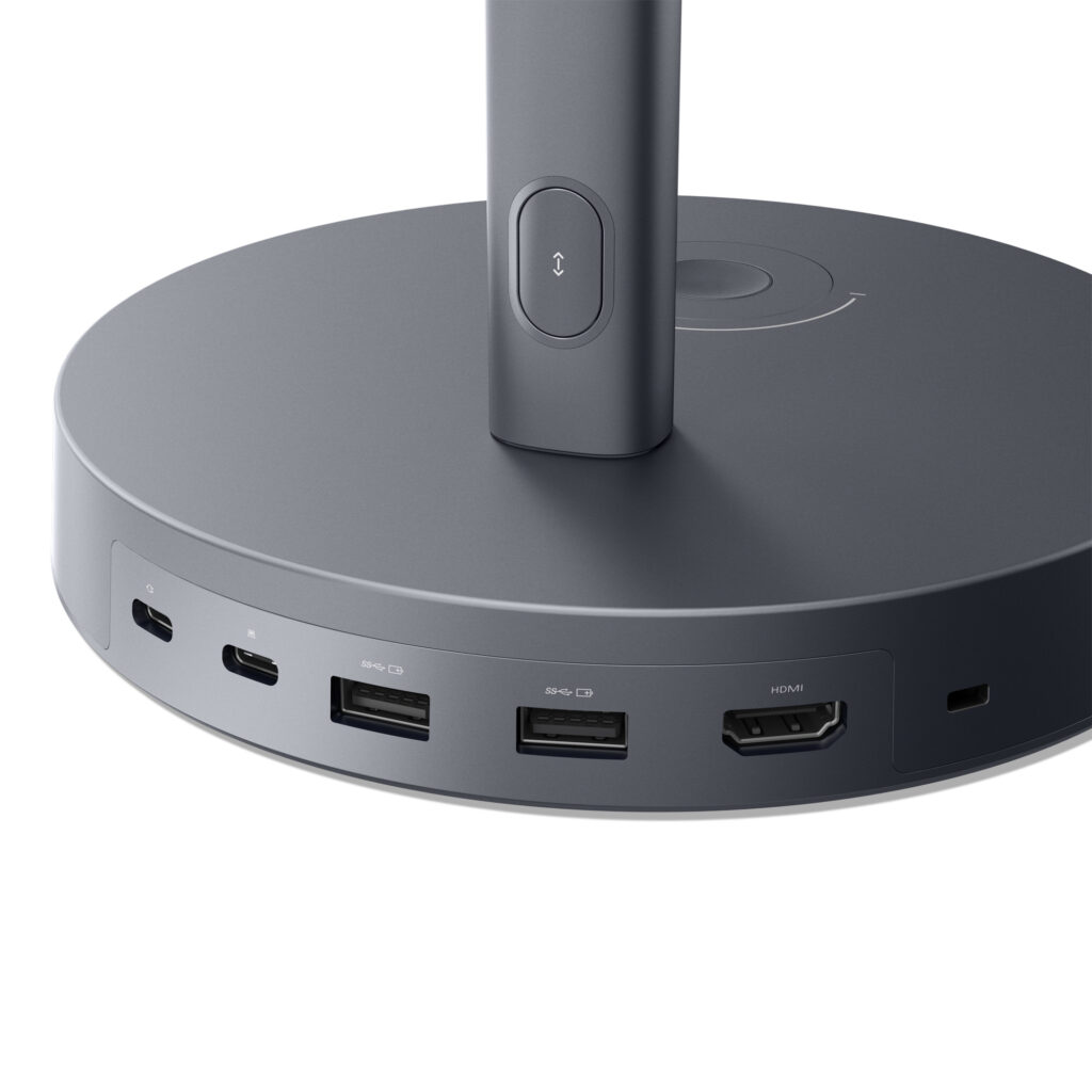 La base de la estación cuenta con un conector USB-C de 135 W y otro USB-C de 65 W. Asimismo, dicen presente dos puertos USB-A 3.1 y un puerto de salida HDMI 2.0 para conectar una pantalla externa de hasta 4K a 60fps.