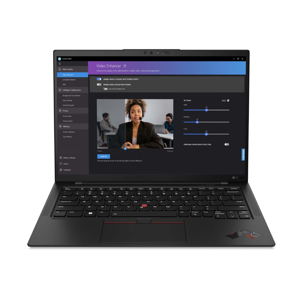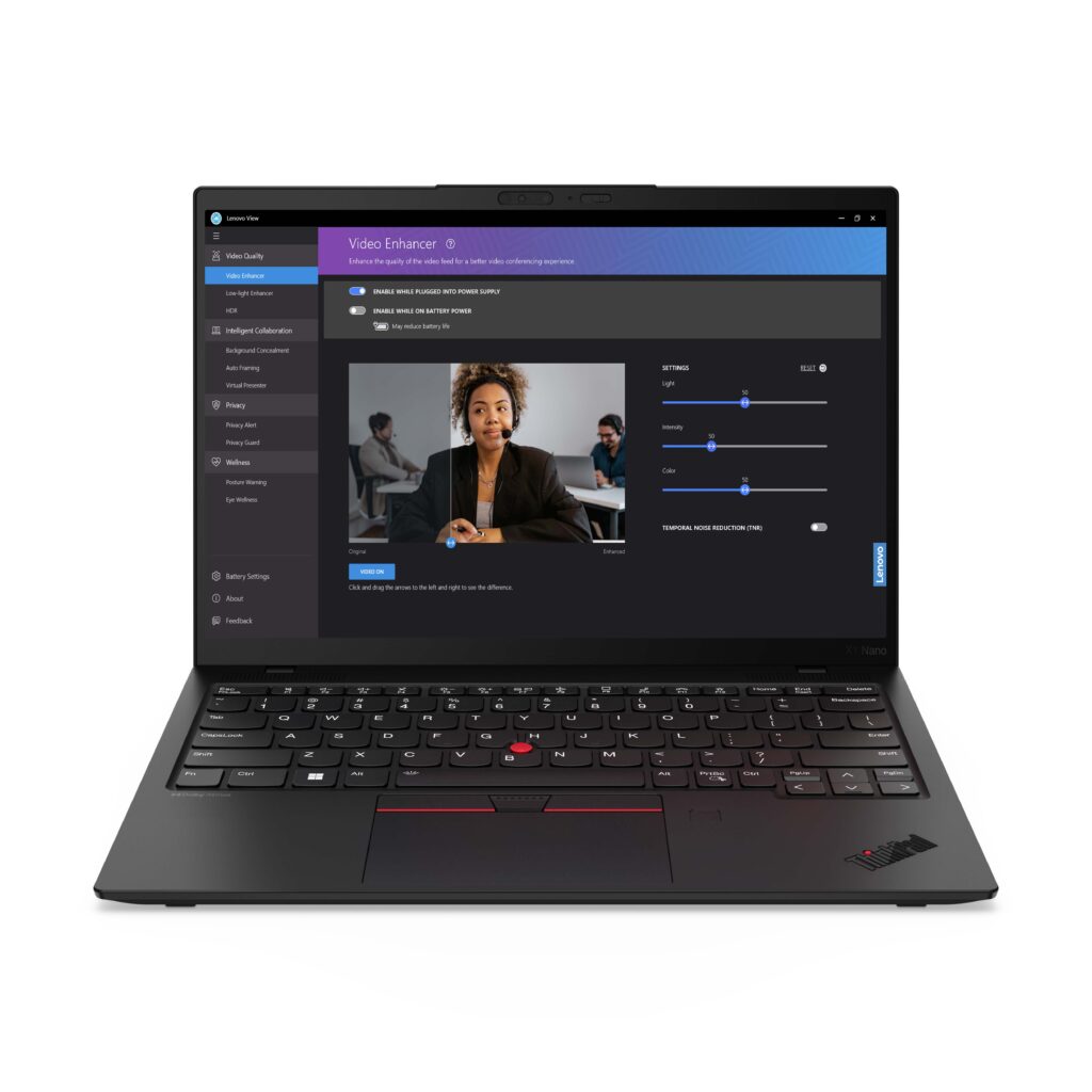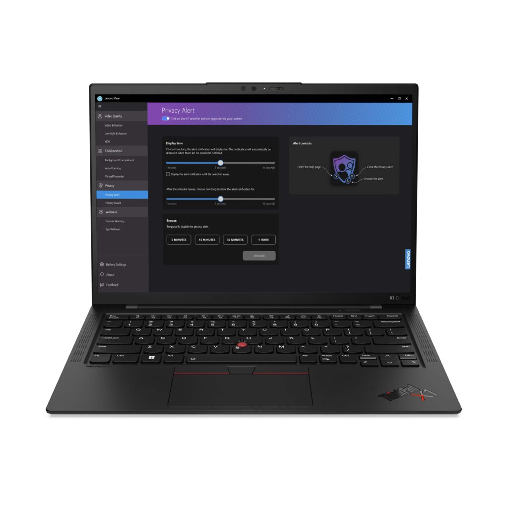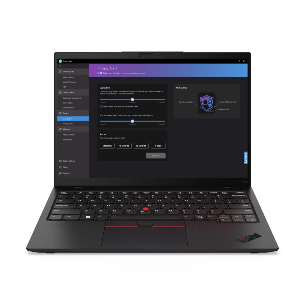 Además, la aplicación Lenovo View ofrece tecnología de visión artificial avanzada para mejorar la calidad de la imagen de video y herramientas para la colaboración, la seguridad y el bienestar digital. Permite aprovechar mejor la cámara integrada para videollamadas. Aparte, con Privacy Guard y Privacy Alert brindan seguridad adicional al activar el desenfoque de privacidad o mostrar el ícono de privacidad cuando se detecta la cara de un espectador desautorizado al mirar la pantalla de PC.