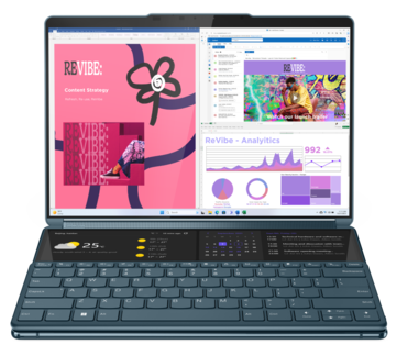 Así, la Lenovo Yoga Book 9i de 9ª generación funciona con los nuevos procesadores Core Ultra de 14ª generación de Intel. Los procesadores son Raptor Lake-U de 15 W. La CPU se complementa con una memoria LPDDR5x de hasta 32 GB y un SSD PCIe Gen4 de hasta 1 TB.
