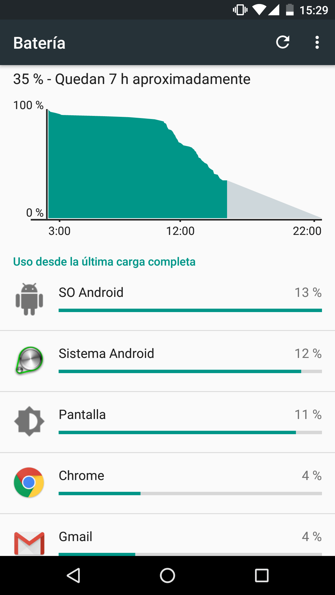 En la prueba pueden ver una etapa de sueño donde casi no se consumió energía, pero luego ven que se descarga rápidamente durante su uso. Una cosa por otra. Eso sí, los dos procesos de SO Android y Sistema Android evidentemente están consumiendo más de lo normal y eso debe ser corregido.