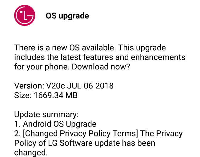 El paquete de actualización en sí tiene un peso de 1.669,34MB — algo más de 1,6GB –. Su número de compilación es V20c-JUL-06-2018.
