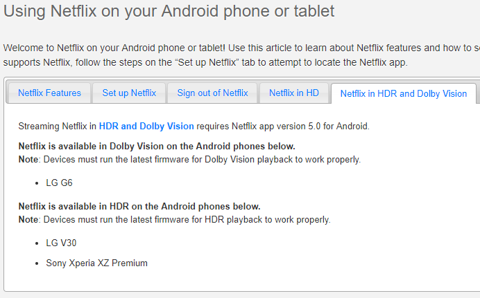 El pasado 9 de mayo del presente año, Netflix nos sorprendió al anunciar que el LG G6 era el primer smartphone compatible con la tecnología Dolby Vision que mejoraba notablemente la calidad de imagen. Luego el 4 de agosto Netflix anunciaba que el Sony Xperia XZ Premium ya era compatible con la tecnología HDR.