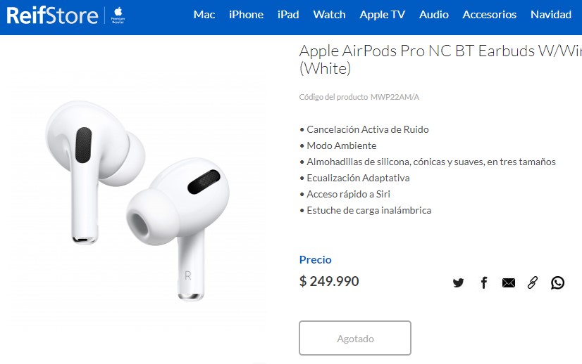 Estos audífonos estuvieron disponibles en las tiendas MacOnline y Reifstore, pero lamentablemente para los fanáticos, los AirPods Pro ya están completamente agotados en ambos lugares, pero se espera que pronto tengan más stock.