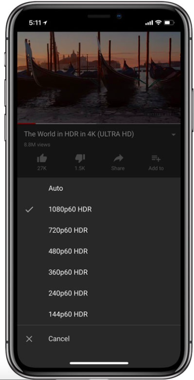 Para ver este tipo de contenido solo bastará con que tengas la aplicación oficial de YouTube actualizada a la versión 13.17 y buscar un video compatible con HDR. Por ejemplo, puedes buscar «4k hdr» en el buscador para encontrar videos aptos. Una vez iniciada la reproducción podrás cambiar la calidad de imagen en donde encontrarás la opción HDR.