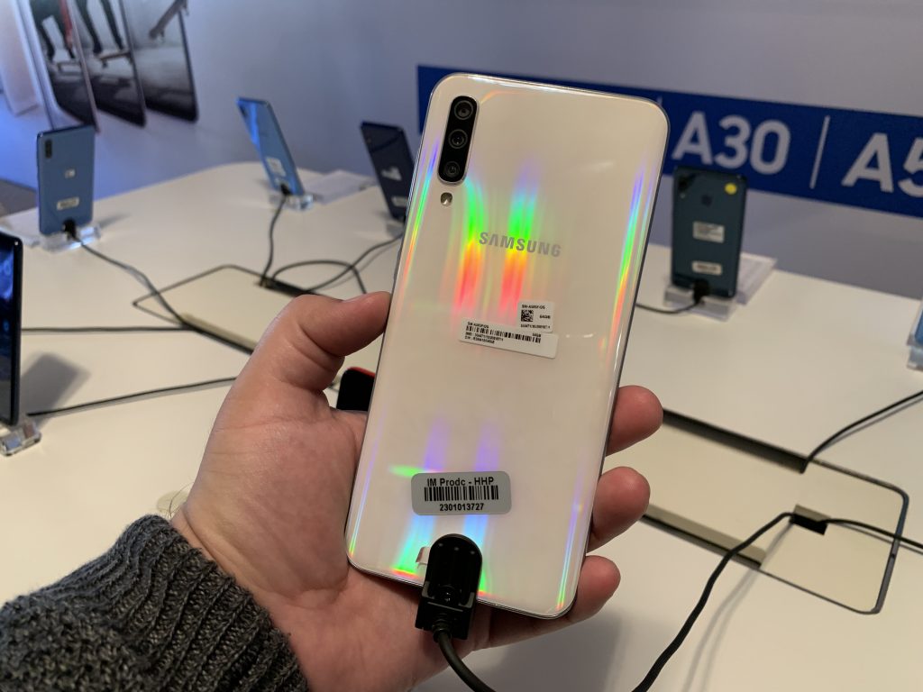 El penúltimo integrante de la línea Galaxy A destaca por tener un lector de huellas debajo de su pantalla Infinity-U del tipo Super AMOLED de 6,7 pulgadas con resolución Full HD+. Integra un procesador de ocho núcleos, opera con Android 9 Pie bajo la capa de personalización One UI y su batería interna tiene 4.500 mAh de capacidad.