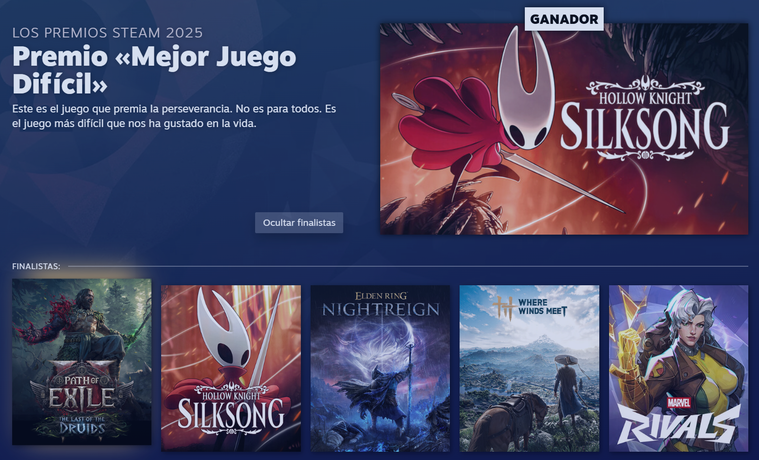 La obra desarrollada por Team Cherry obtuvo el reconocimiento como Juego del Año tras un extenso periodo de desarrollo y expectativas elevadas. El título se destacó por su integración técnica dentro del ecosistema de Valve y la respuesta de los usuarios.