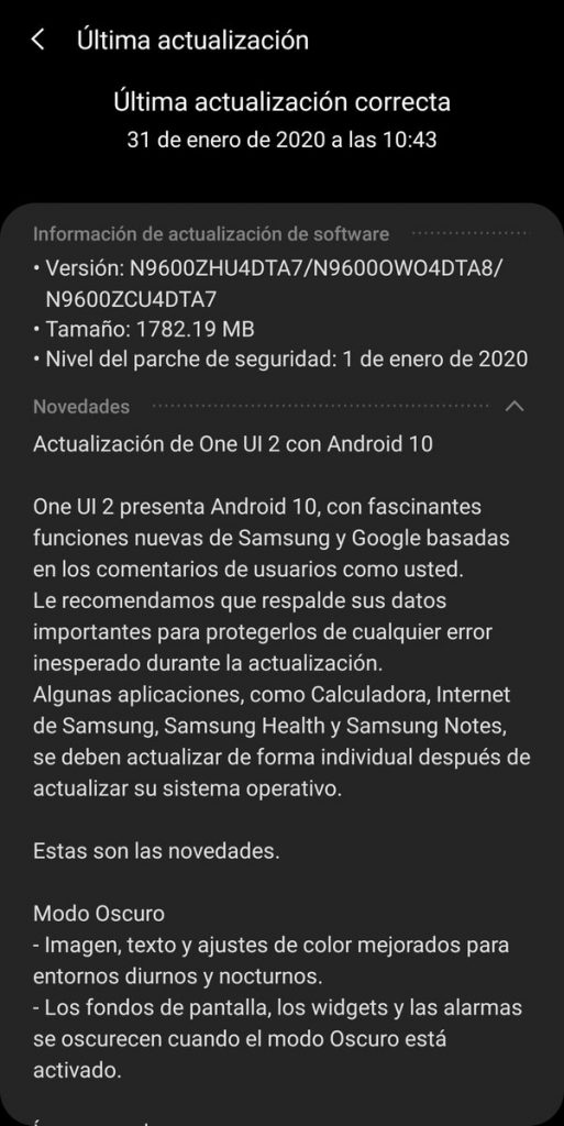 Se trata de la llegada de Android 10, la versión más reciente del sistema operativo móvil de Google y que también trae la interfaz personalizada de Samsung llamada One UI en su versión 2.0.
