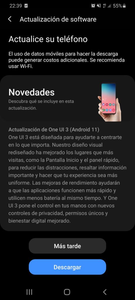 Se trata de la actualización oficial a Android 11 con la nueva versión de la capa de personalización que conocemos como One UI 3.0 que integran varios cambios en el diseño, así como también funciones nuevas y todas las novedades que trae la última versión del sistema operativo de Google.