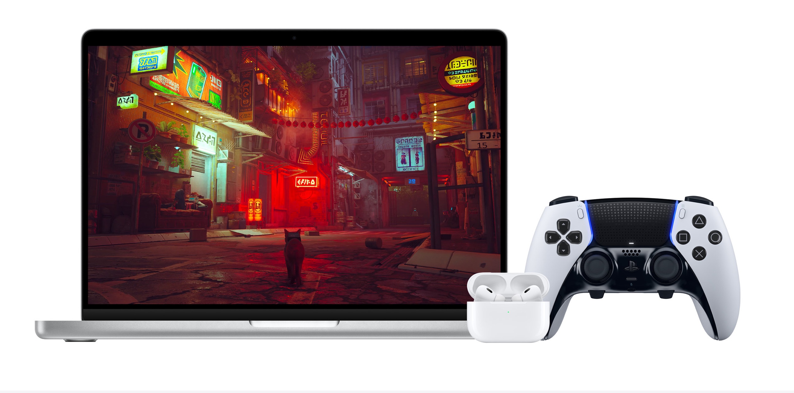 Para los jugadores, hay un nuevo Modo de Juego en macOS Sonoma que ofrece una experiencia de juego optimizada con velocidades de cuadros más suaves y consistentes. Reduce drásticamente la latencia de audio con los AirPods y la latencia de entrada con los controladores de juego, y funciona con cualquier juego en Mac.