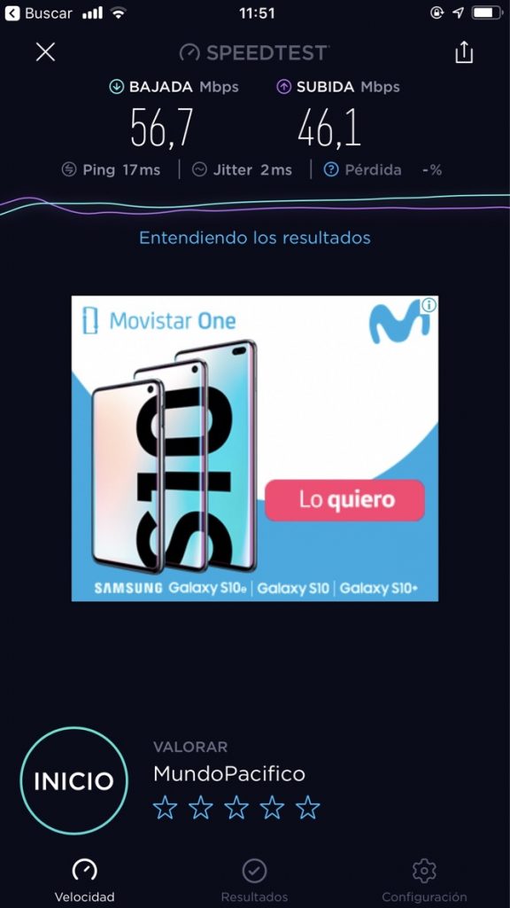 En una prueba posterior, la velocidad de bajada fue de 40,88 Mbps.