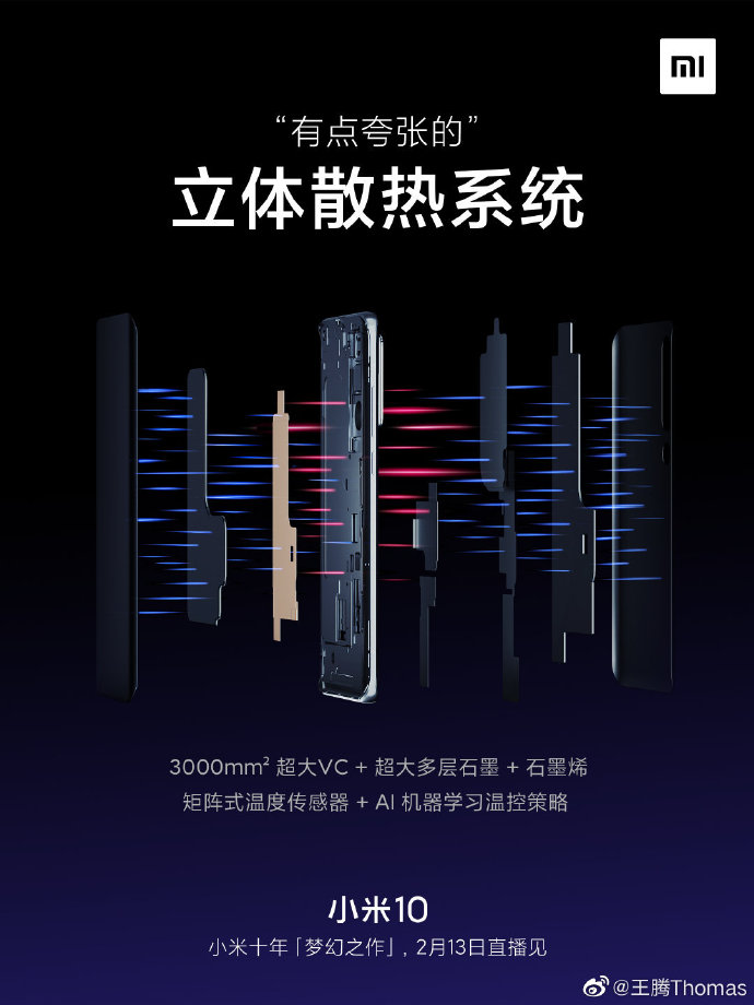 Wan Teng Thomas, otro ejecutivo de Xiaomi, ofreció más información sobre este sistema de disipación de calor, pero con la perspectiva puesta en el software. Los Mi 10 harán uso de un programa para analizar los datos del punto de control de temperatura y ajustar dinámicamente el consumo de energía. Básicamente, ayudaría a lograr un rendimiento térmico sin precedentes.