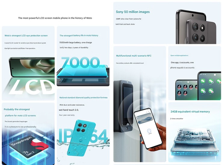 En el apartado fotográfico, el Moto G100 2025 monta un sensor principal Sony LYT-600 de 50 MP, un ultra gran angular de 8 MP y una cámara macro. Al frente, una cámara selfie de 32 MP. También incluye parlantes estéreo, resistencia IP64 al agua y polvo, y estará disponible en tres colores.