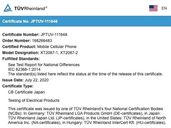 Las capturas anexadas dentro de este artículo corresponden a la documentación de la certificación ya indicada, sirve como muestra de ello. Allí observamos que, en realidad, aparecen dos equipos con los números de modelo XT2087-1 y XT2087-2. Básicamente serían el mismo, esa distinción en el último dígito puede suponer para diferenciar los mercados a los que llegaría, bandas de frecuencia soportadas o algo similar.