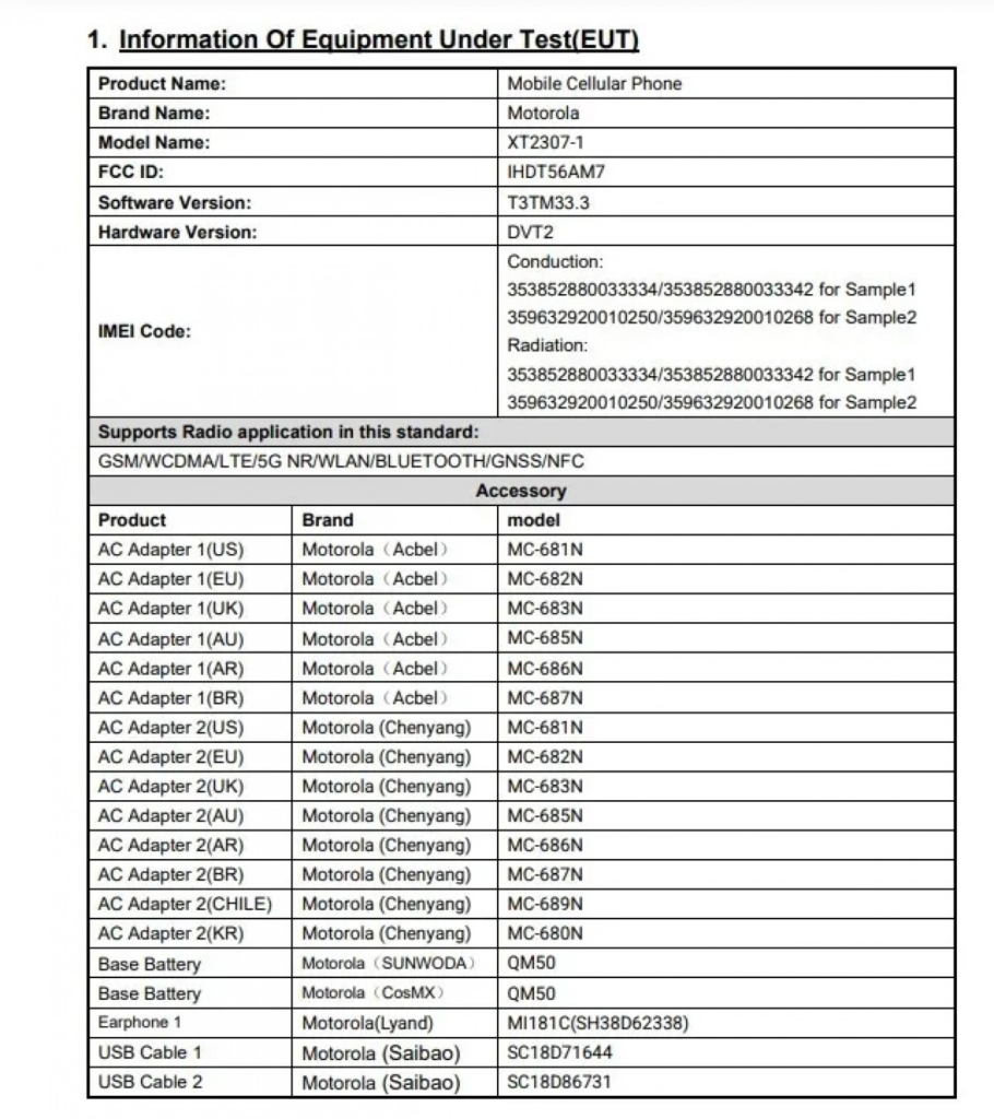 Hoy, el dispositivo pasó por la FCC, ahí se reveló que tiene el nombre de modelo de XT2307-1 y usará una batería QM50. La misma será de 5.000 mAh de capacidad, y soportará carga rápida de 68W, según se desprende del cargador compatible MC-681N, que seguramente estará en la caja. El teléfono también tendrá 5G y NFC.