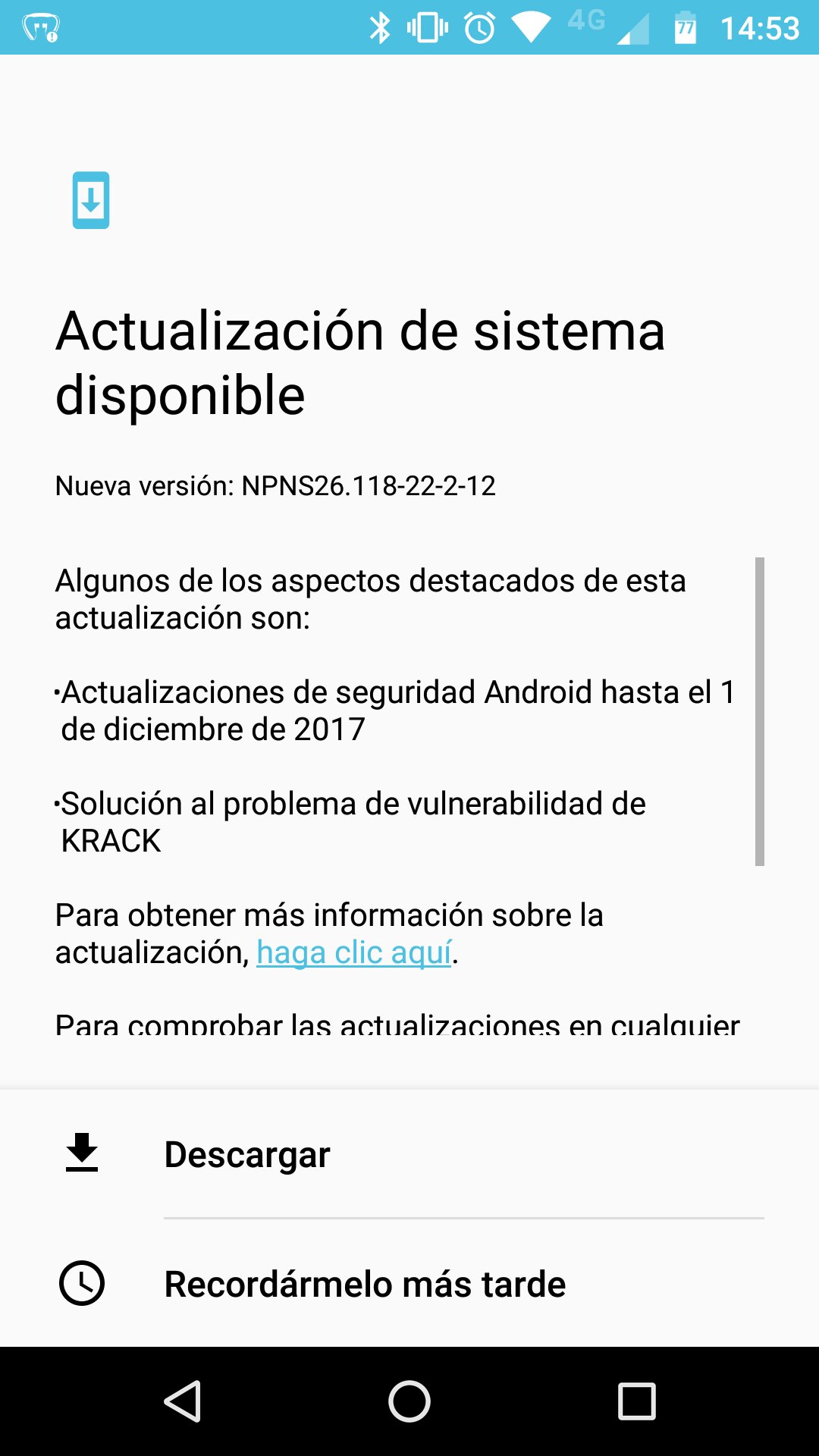 En el caso del Moto Z Play, no solo actualiza el parche de seguridad, también viene a solucionar el problema de vulnerabilidad llamado KRACK que afecta estos dispositivos.