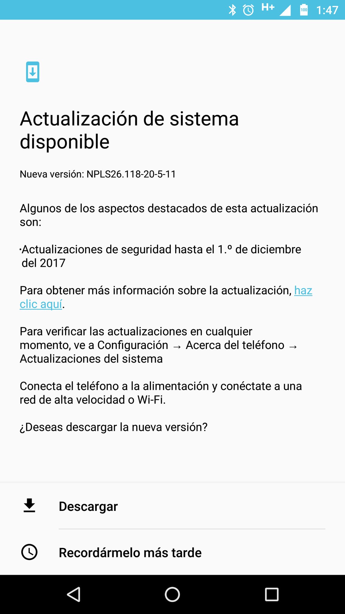 Dicha actualización no trae grandes novedades, solo viene a mejorar la seguridad del equipo debido a que actualiza el parche de seguridad Android al mes de diciembre del año 2017 en los Moto Z y Moto Z Play.