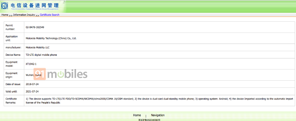 El Motorola One Power con número de modelo XT1942-1 es quien recibió la certificación correspondiente en esta ocasión.
