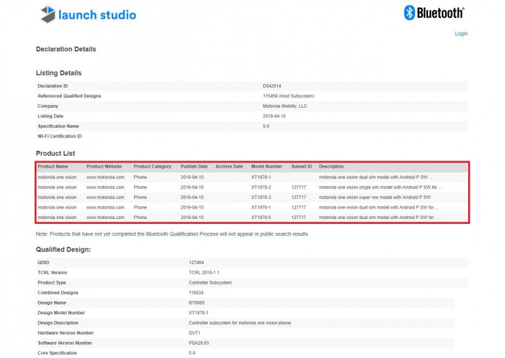Pero el Razr 2019 no fue el único que recibió aquella certificación, ya que el smartphone que conocemos hasta el momento como Motorola One Vision recibió certificación de Bluetooth SIG para cuatro variantes de este modelo.