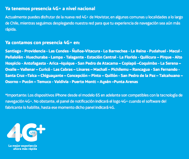 Hace unas semanas atrás te comentábamos que el operador Movistar anunciaba en su web que ya contaban con 4G+ en algunas regiones del país luego de estar ofreciendo dicho servicio solo en algunas comunas de la Región Metropolitana.