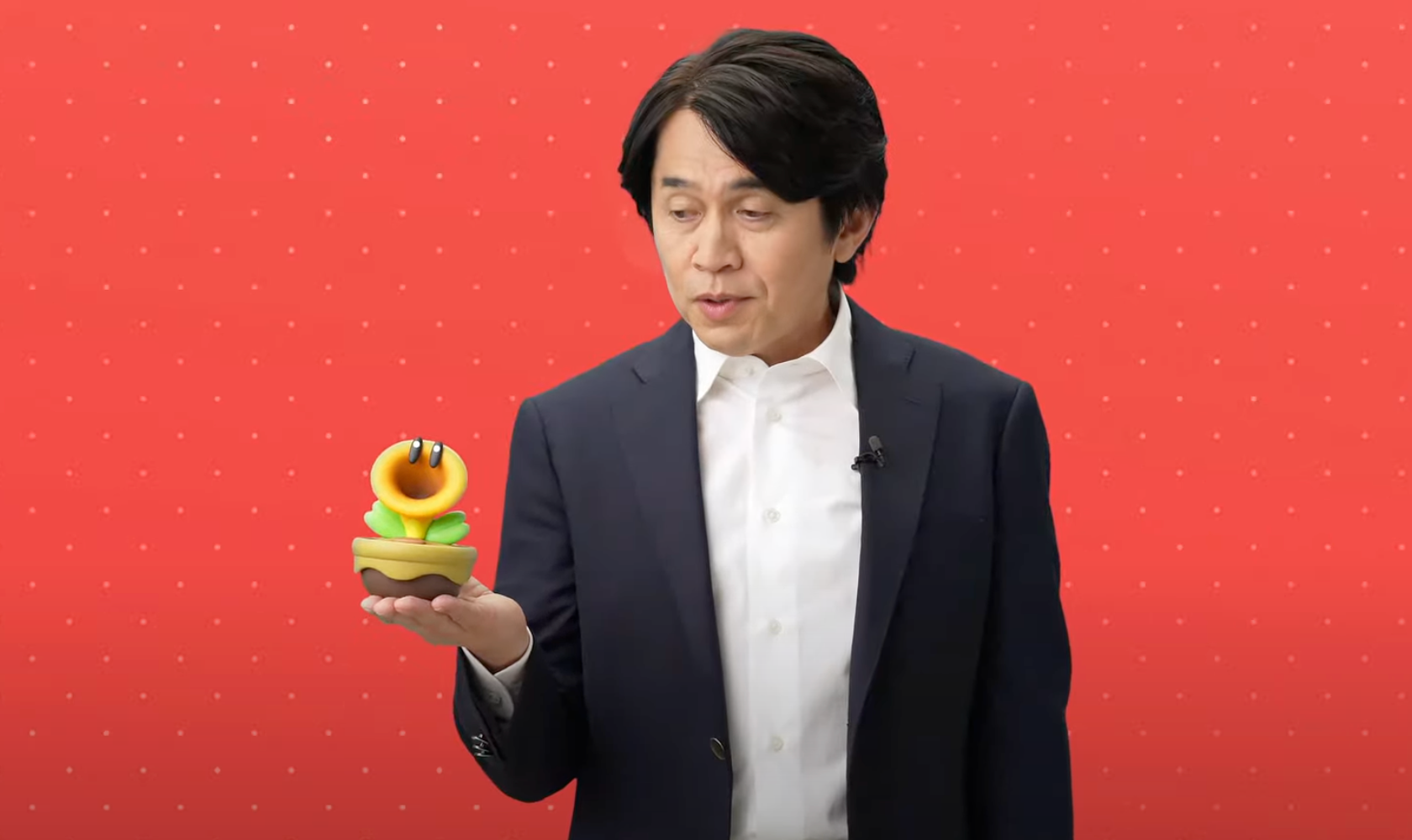 Basado en las flores parlantes de Super Mario Bros. Wonder, el producto físico real puede hablar por sí mismo y decir cosas como, «Nos parecemos un poco, ¿eh?» En el Direct, vimos a Yoshiaki Koizumi de Nintendo hablar con la flor.
