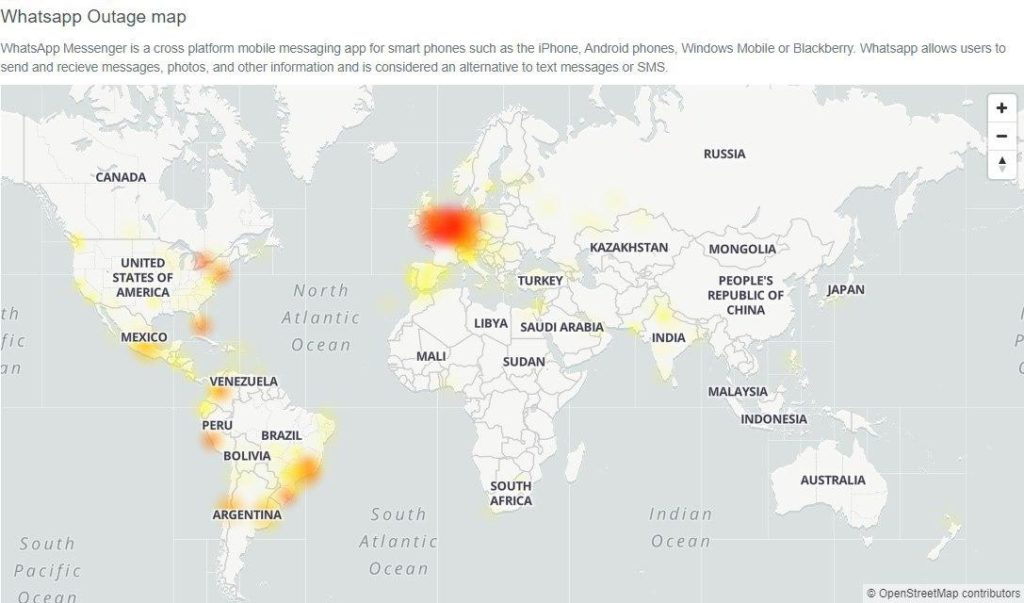 Todo parece indicar que el servicio de mensajería de WhatsApp ha sufrido una caída a nivel mundial, concentrándose principalmente en gran parte de Europa, tal y como lo demuestra la siguiente imagen: