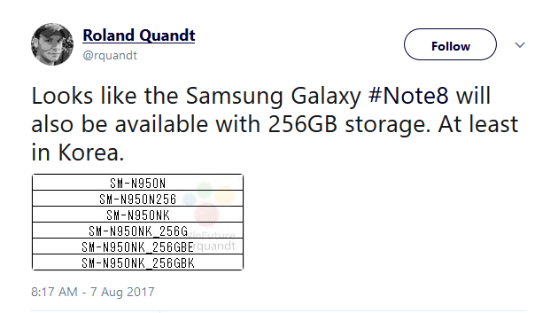 En su cuenta de Twitter, ha sido el afamado y prácticamente siempre certero Roland Quandt quien ha descubierto un listado de las variantes que acompañarán al Galaxy Note 8 en su presentación, y la versión Emperor aparece en el listado.