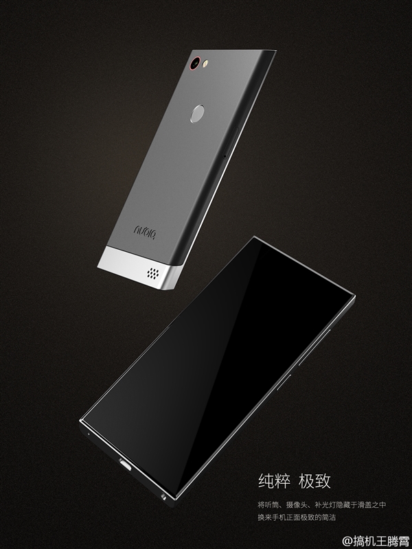 Como se puede apreciar en las imágenes, el nuevo teléfono ya no trae el característico botón home rojo de Nubia, si no que la pantalla es completamente sin bordes, y tampoco tiene cámara frontal, ya que el teléfono puede deslizarse para poder hacer aparecer la cámara y así tomar fotos con la misma.