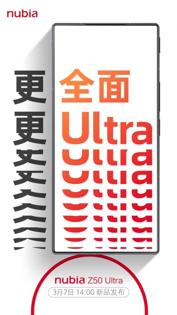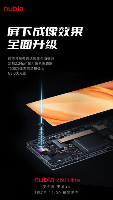 ZTE fue de las primeras en apostar por las cámaras frontales debajo de la pantalla. Y en pocos días nos traerá una nueva propuesta. Bueno, lo ahora con su submarca Nubia. Dicha firma nos revelará al ya confirmado Nubia Z50 Ultra el 7 de marzo próximo.