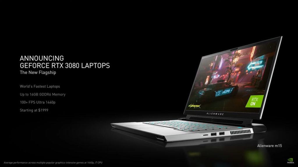 - RTX 3080: La GPU más rápida del mundo en portátiles. Memoria GDDR6 de 16GB. 100fps en resolución 1440p. $1999 dólares.