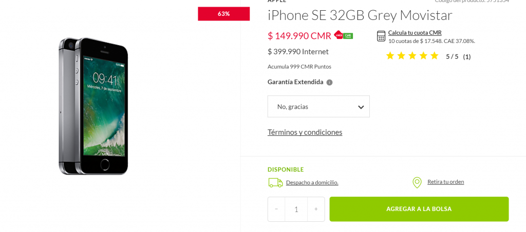 ¿Te gustan los dispositivos más pequeños? Este es tu día de suerte. Falabella ha publicado –con motivo del CyberMonday– una excelente oferta del iPhone SE de 32GB. Solo con tarjeta CMR podrás acceder a el por un precio de CLP $149.990.