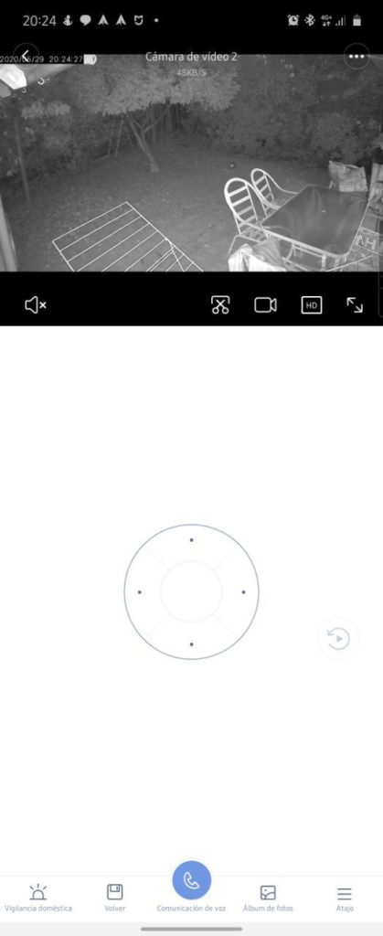 La gracia de esta cámara es que tiene giro en 360 grados y cuenta con visión nocturna, logrando que la oscuridad total se vea bien claro, además cuenta con micrófono y un altavoz.