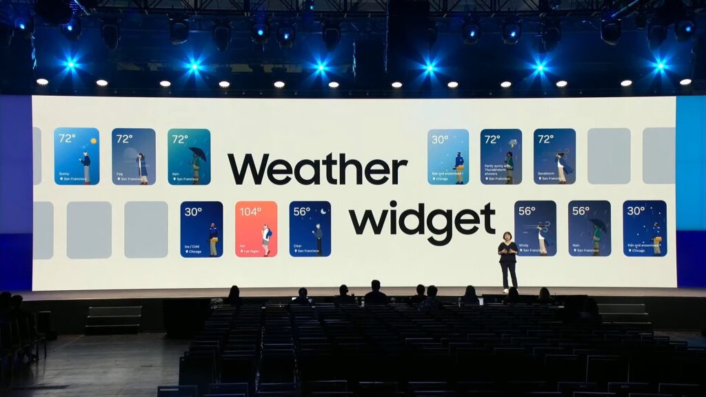 La pantalla de bloqueo recibe un nuevo widget del reloj, podemos hacerlo más grande o pequeño, así como también modificar su posición. Quick Share ahora estará disponible en más dispositivos de Samsung y laptops con Windows.