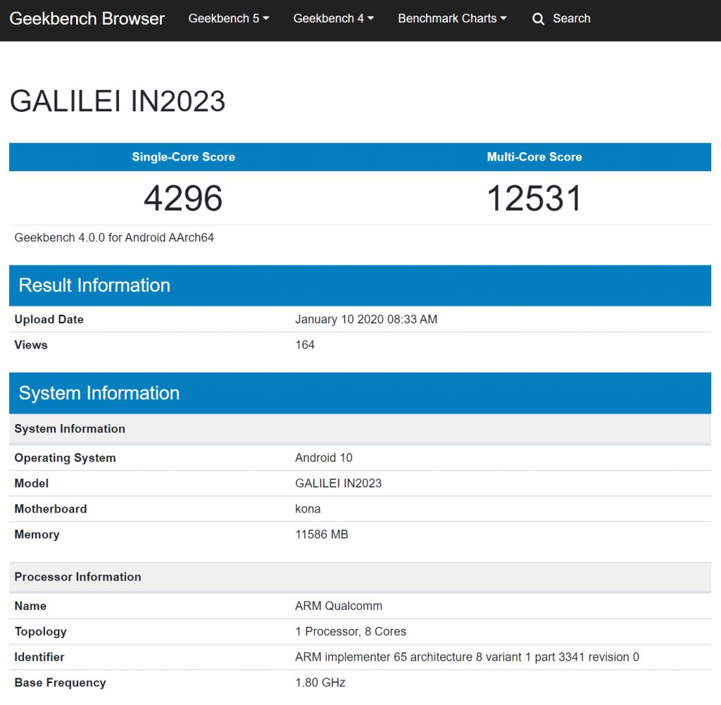 La imagen superior a estas líneas es una captura que certifica lo que acabo de comentarte. Allí notamos que el terminal protagonista de este artículo estaría identificado bajo la nomenclatura GALILEI IN2023. Ejecutará Android 10 desde el primer día y portará 12GB de memoria RAM.