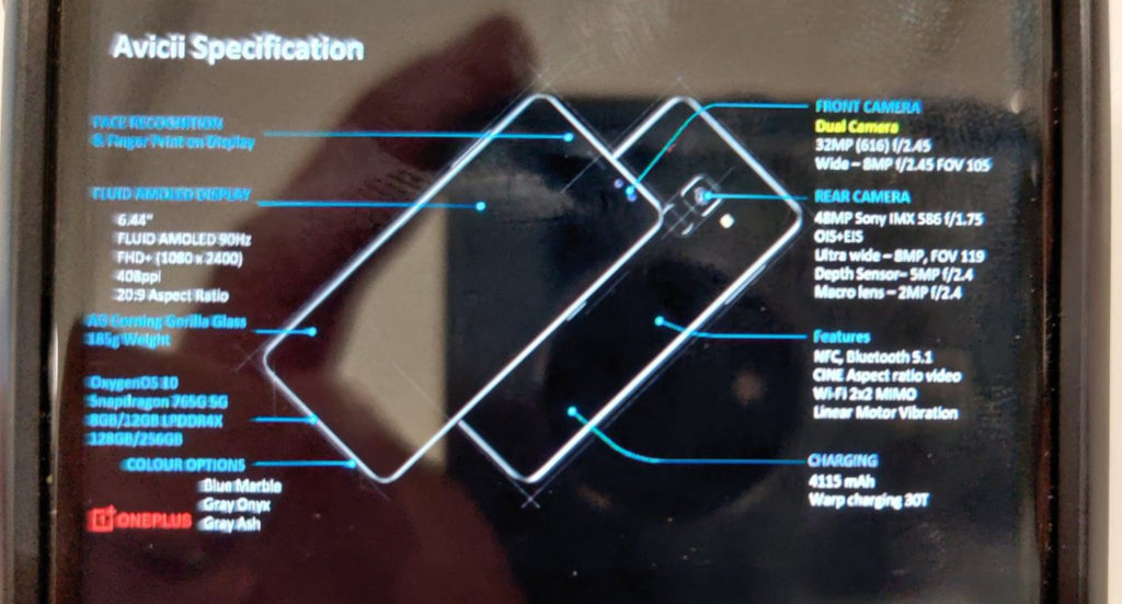En la imagen superior a estas líneas también nos percatamos de la existencia de NFC, Bluetooth 5.1 y Wi-Fi 2 x 2 MIMO. Su batería de 4.115 mAh soportará la tecnología de carga rápida Warp Charge 30T. Ejecutaría Android 10 recubierto por OxygenOS. Para finalizar, se cree que llegará en colores Blue Marble, Grey Onyx y Grey Ash.