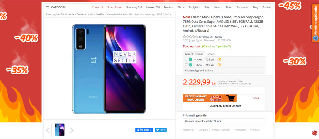 Pasando al mundo de la rumorología, la tienda rumana evoMAG.ro tiene publicado el que vendría a ser el esperado producto de OnePlus. Peeero, es muy importante que tomemos esta información con suma cautela, puesto que es por demás llamativa y anticipada. La imagen superior a estas líneas es una captura realizada a la misma.