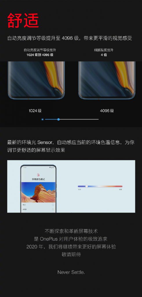 Puede reproducir 1.07 mil millones de colores y tiene 4.096 niveles de ajuste de brillo. Por último, si bien no mencionaron la compatibilidad con el estándar HDR, se espera que cuando veamos este display en el mercado sí lo soporte. Quizás el (supuesto) OnePlus 8 Pro sea quien lo estrene.