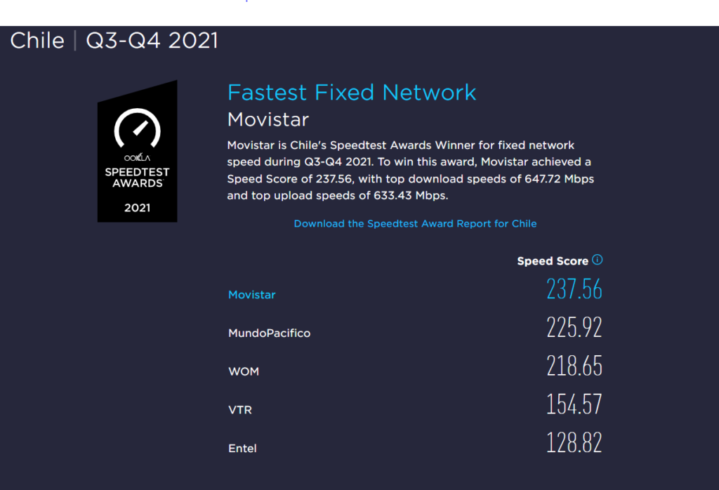 Como podemos en la infografía, Movistar superó a Mundo Pacífico por un estrecho margen, dejando en tercer lugar a WOM, cuarto quedó VTR y Entel quedó en el quinto lugar de las mediciones para nuestro país.