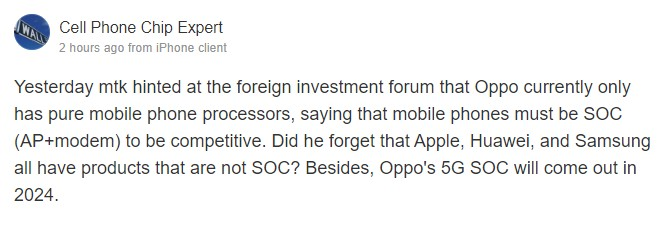 La información habría sido confirmada por un ejecutivo de MediaTek, quien habló en un foro de inversión extranjera en Hsinchu, Taiwán, además de afirmar que Oppo quiere tener un verdadero chipset para mantener su ventaja competitiva en el mercado de los teléfonos inteligentes.