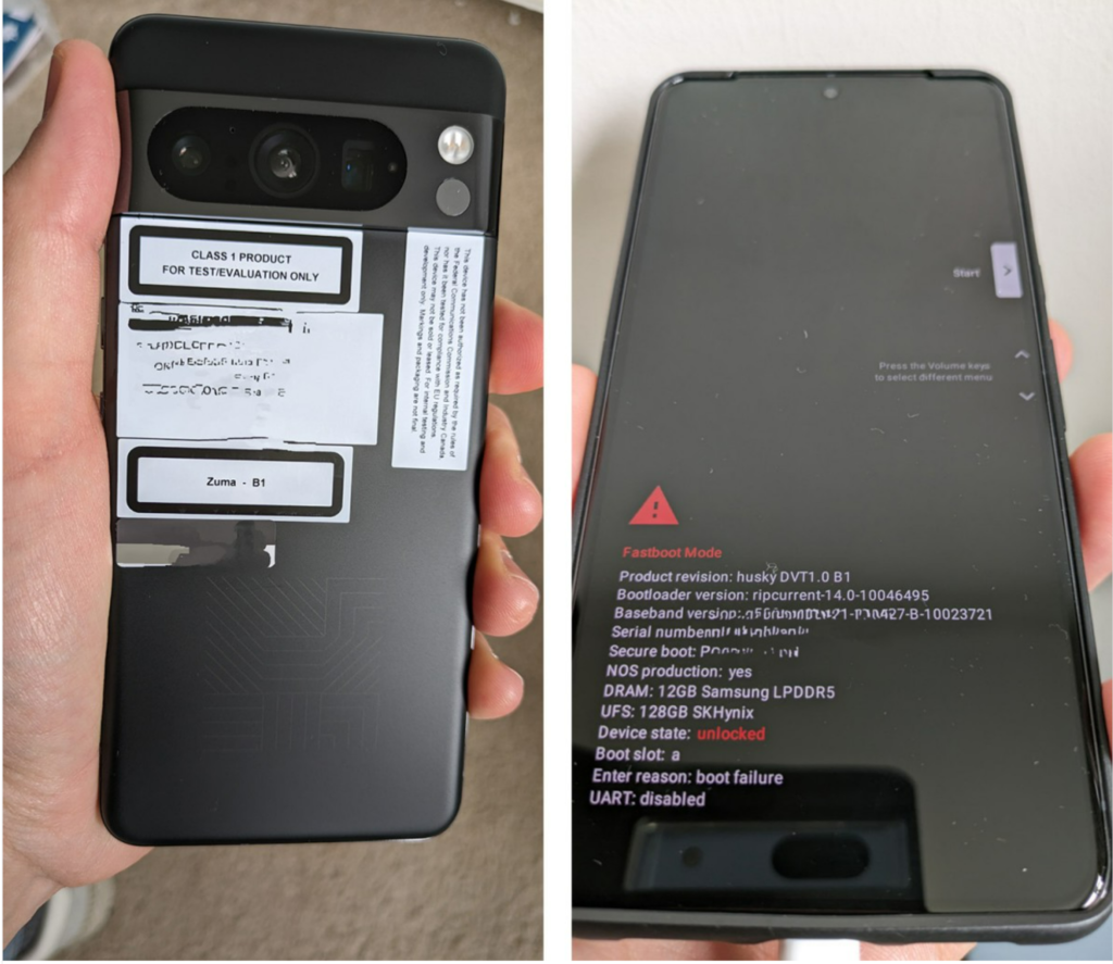 El prototipo cuenta con 12 GB de memoria RAM LPDDR5 fabricada por Samsung y 128 GB de almacenamiento UFS fabricado por SK Hynix. La mala noticia para el usuario que coompartió la imagen es que en la parte trasera se puede ver una suerte de código con el que ciertamente Google puede rastrear el equipo.
