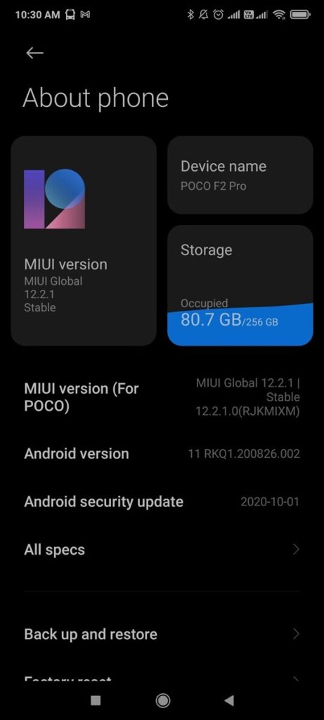 El número de versión de firmware es 12.2.1.0.RJKMIXM y, según los reportes, lleva un peso de 3GB; así que te recomendamos encontrarte bajo una red Wi-Fi si vas a actualizar, por el bien de tu paquete de datos móviles. El update incluye el parche de seguridad de Android firmado al mes de octubre de 2020.