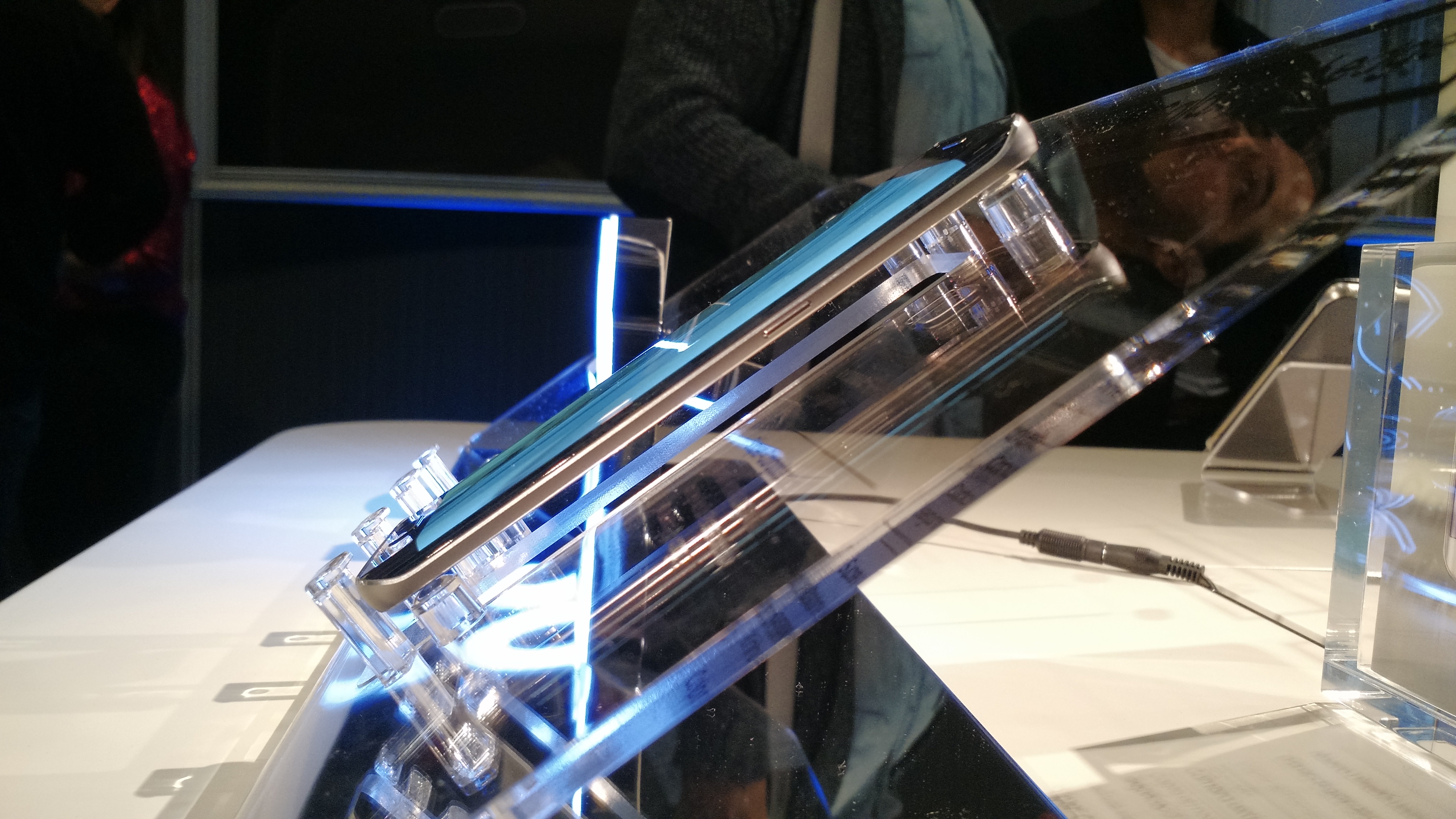 Este dispositivo se robó la atención de todos en el evento. Internamente es igual al recién mencionado pero varía su diseño y funcionalidades en el exterior, esto porque presenta una pantalla curva en ambos costados del teléfono. Hay que decir que el aspecto es realmente glorioso.