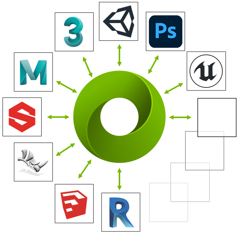 Incluso, podrías requerir una conexión a la plataforma de Omniverse para mejorar tu flujo de trabajo mediante extensiones desarrolladas por empresas de software reconocidas como: