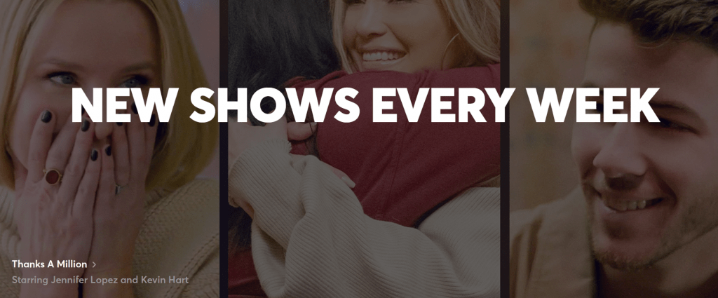 Quibi viene a entregar varios shows con contenido original, pasando desde la comedia hasta documentales, con estrellas mundialmente conocidas, como Jennifer Lopez, Kevin Hart, Jason Bateman y Liam Hemsworth, entre muchos otros.