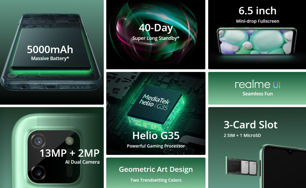 El nuevo Realme C11 viene en colores Pepper Grey y Mint Green. Estará disponible en Malasia de forma oficial e inicial desde el 7 de julio a un precio de RM $429, es decir, unos aproximados 100 dólares estadounidenses.